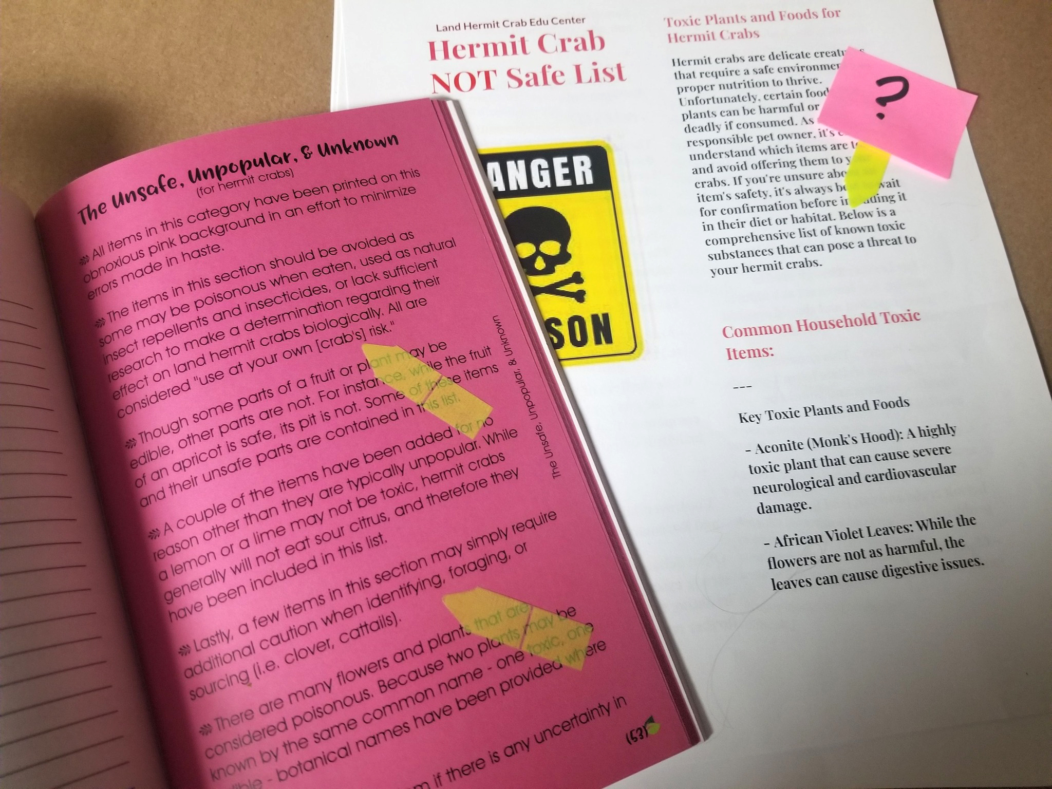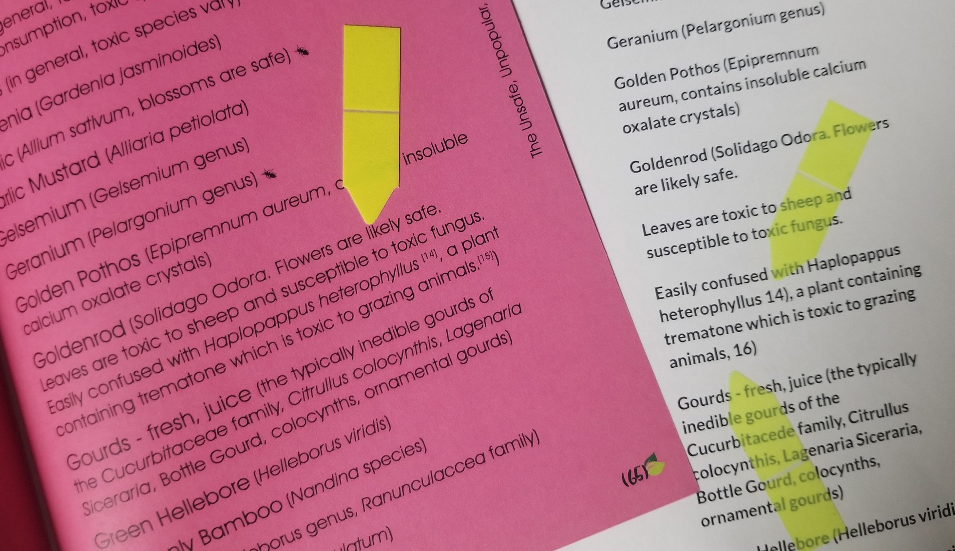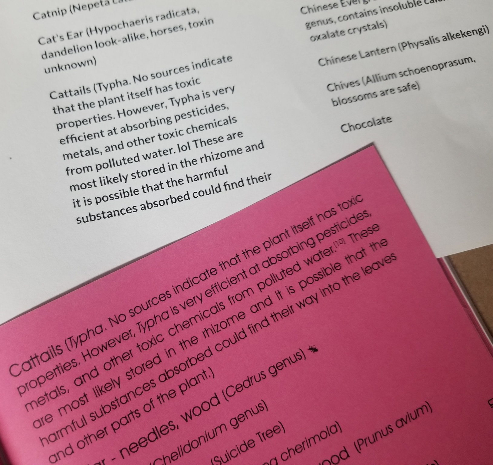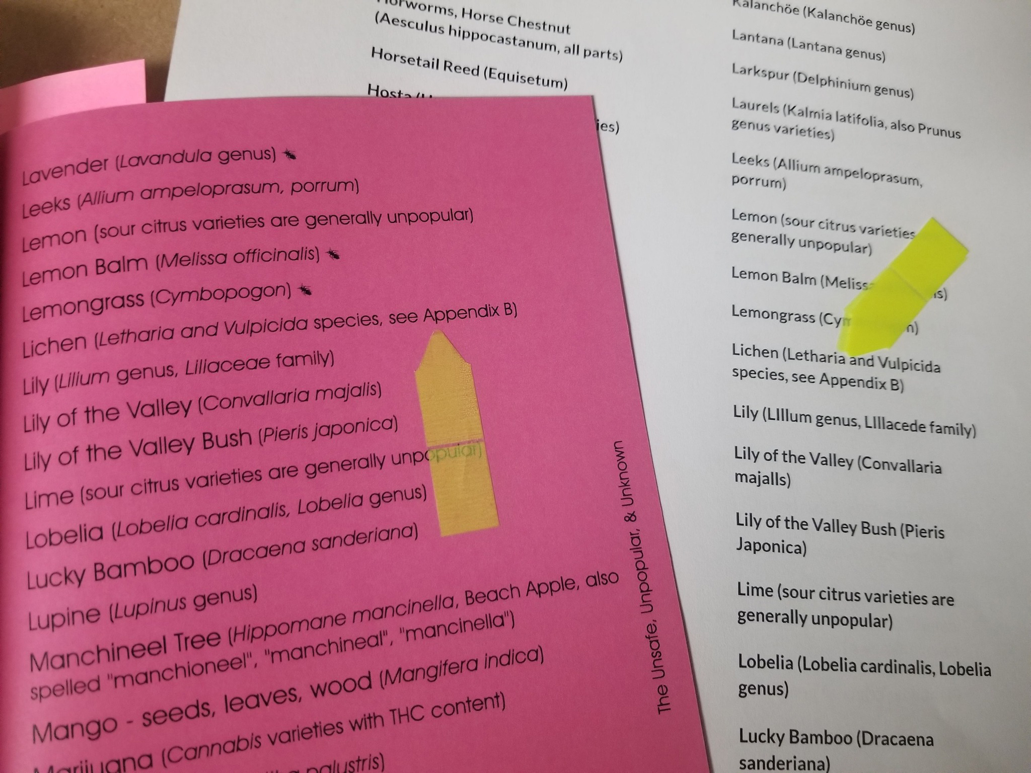 “Fresh & Foraged…”, Pages 53, 61, 65, and 67; “Not Safe List.pdf” – references stripped, though the annotations were copied. The contents relabeled as “NOT Safe” and “known toxic substances.”