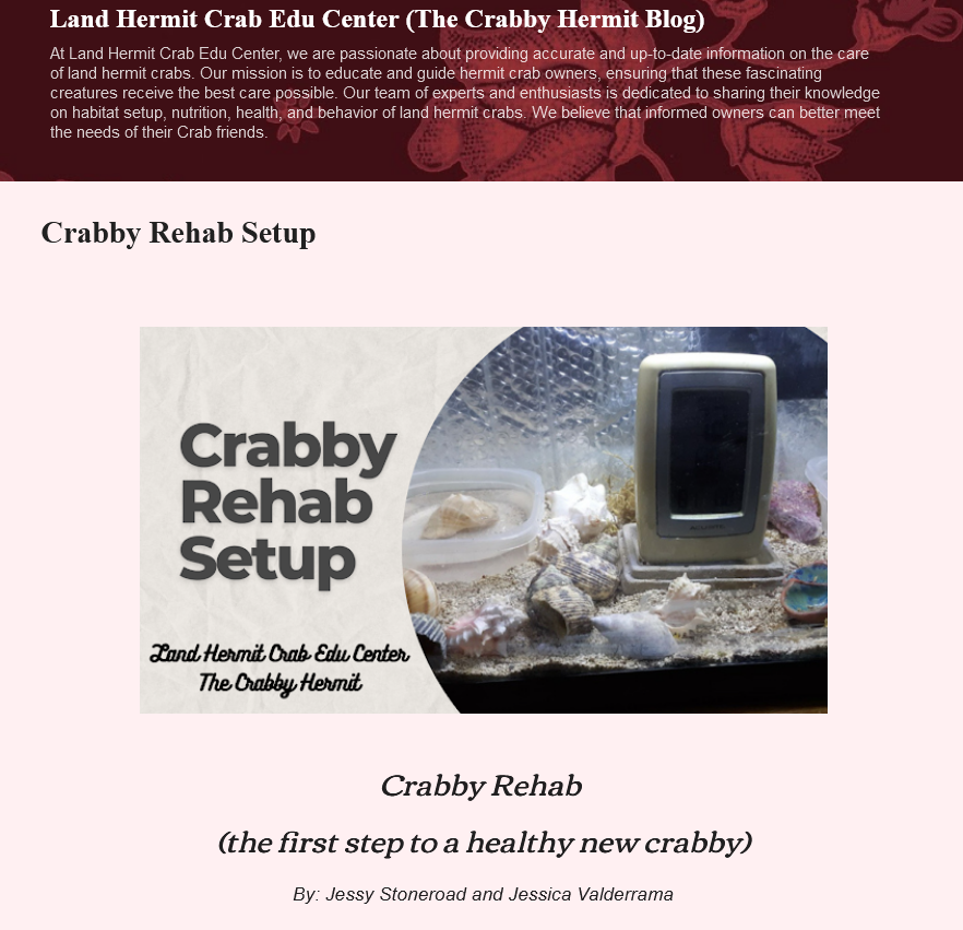 Copyright 2025. All Rights Reserved. The individual copyrights of any documents shown remain with the actual authors of those works. The individual, unedited photos of pages from “The Complete Guide to Land Hermit Crabs and Their Care: Changing the Mindset of Hermit Crab Community” were permitted for use on this site only. While screenshots are “okay”, a link to the full context of this site is preferred.