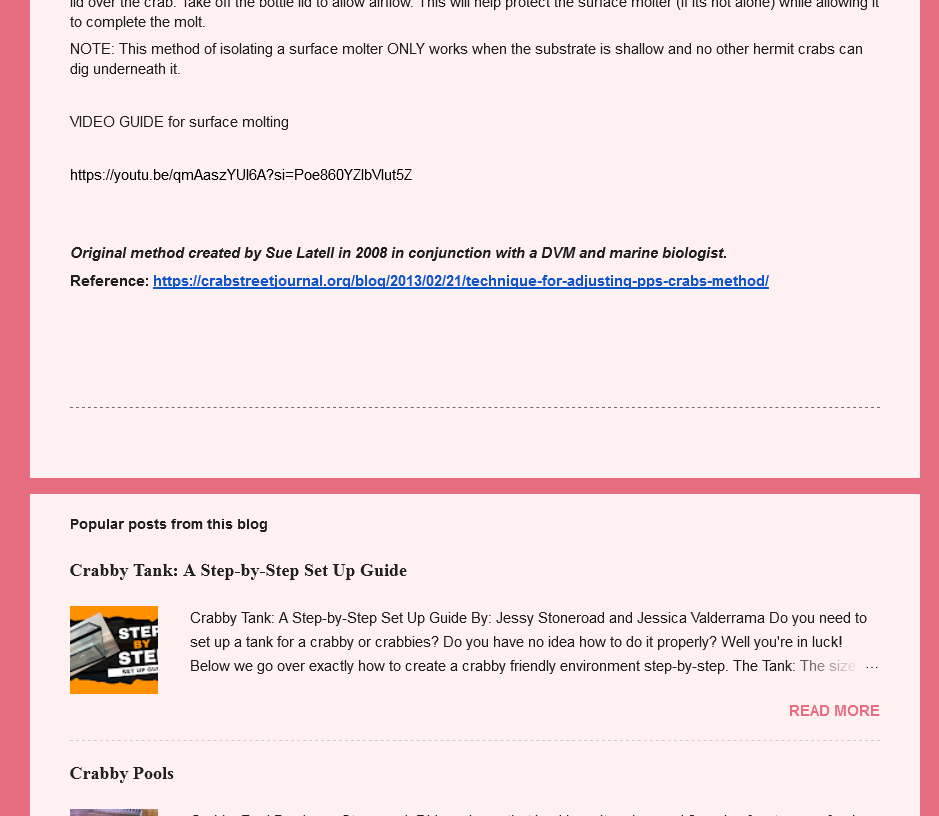Images of excerpts of the blog post with its methods of “Crabby Rehab” were retrieved from https://landhermitcrabeducenter.blogspot.com, 2/6/2025. “The Complete Guide…” pages 163 and 164; Also available via The Crab Street Journal, “Post Purchase Death Reduction Method” at https://crabstreetjournal.org/blog/2013/02/21/technique-for-adjusting-pps-crabs-method/ ; Copyright related images were taken from https://support.google.com/legal/answer/3463239?hl=en and https://support.google.com/legal/answer/4558992, retrieved on 2/9/2025.